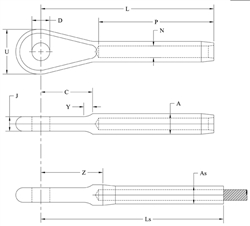 MS Part No. | Cable Dia. | A Diam. | As Dia. | C ±.020 | D Dia. | J | L +.020 -.000 | Ls. Ref. | N Dia. | P | U +.025 -.010 | Y | Z Min. | Lbs. per Piece |